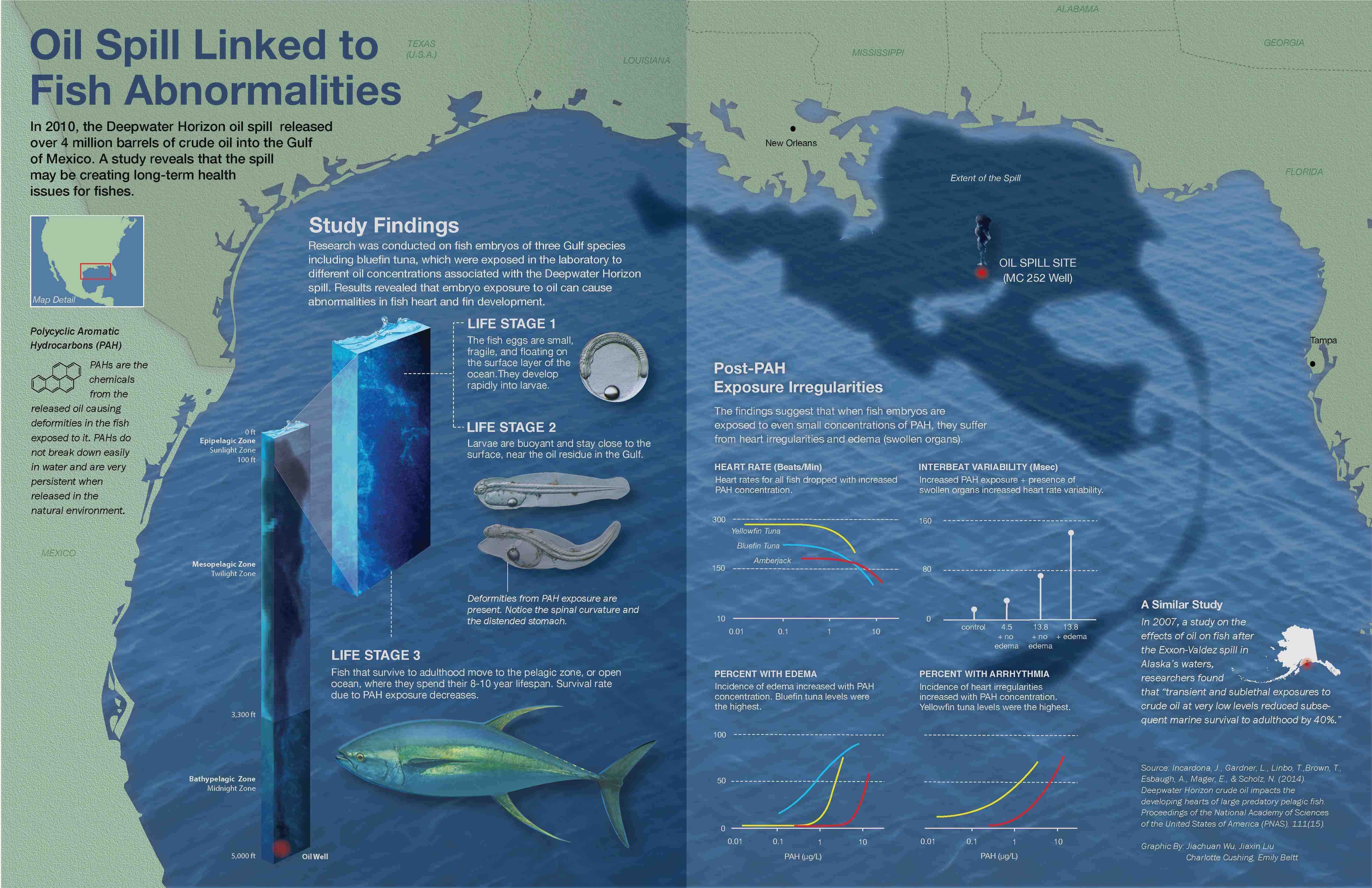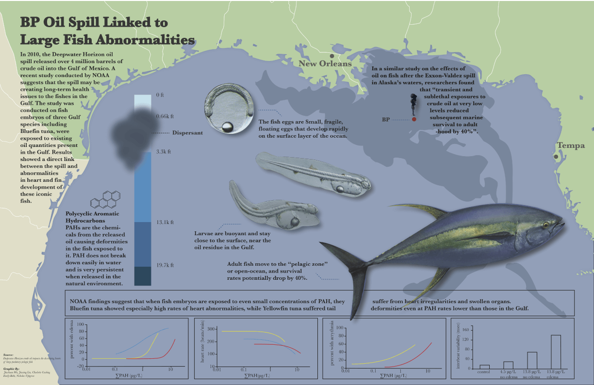 This an Applied Visual Science Lab project. I and my team developed an explanatory graphics and video about the effects of oil spills in Gulf Mexico on the health of deep water fish by using the real marine research paper, “Deep-water Horizon crude oil impacts the developing hearts of large predatory pelagic fish (PNAS)”.